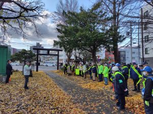 寒い中でしたが町内会、交通安全母の会、交通安全指導員の方々など約50名が安全運転やスピードダウン、シートベルトの着用などをドライバーに呼びかけました。今年は雪の降り始めが早く、タイヤ交換んも間に合わなかった方も多かったと思います。無理をせず、降り始めの慣れない雪道、路面凍結など慎重かつ安全運転を心がけましょう。今季最後の街頭啓発をなりました。参加された皆様ありがとうございました。