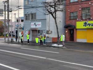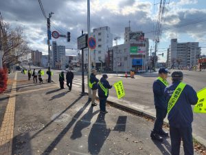 11月13日(木)中の島環状通り交差点で冬の交通安全街頭啓発が行われました。