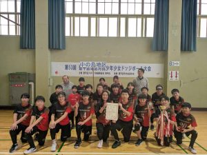 中の島地区からはドッジボールチーム「PalPalooZa(パルパルーザ)」が出場し、念願の優勝を果たしました。昨年の準優勝の悔しさから週2~3回の練習を重ね頑張ってきた成果もあり見事優勝!今後の活躍も楽しみです。おめでとうございます。